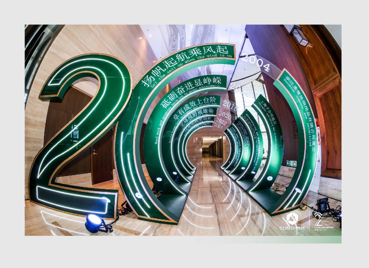 Twenty years, for Sunshine, is not only the accumulation of time, but also a journey of gratitude, innovation and win-win. Today, Sunshine stands on this important milestone, looks back and looks forward to the future. With the theme of #nature to the sun, chasing the light#, it celebrates 20 years of outstanding achievements and looks forward to the bright future. This theme is the condensation of the spirit of Sunshine, which symbolizes the harmonious coexistence of enterprises and nature, as well as the firm pace of continuous pursuit of light and hope. Xiangyang represents Sunshine’s active embrace of change, take the initiative to meet challenges, and seek growth and development; following the light reflects Shengxue’s willingness to work with employees, customers and partners to create a better future.