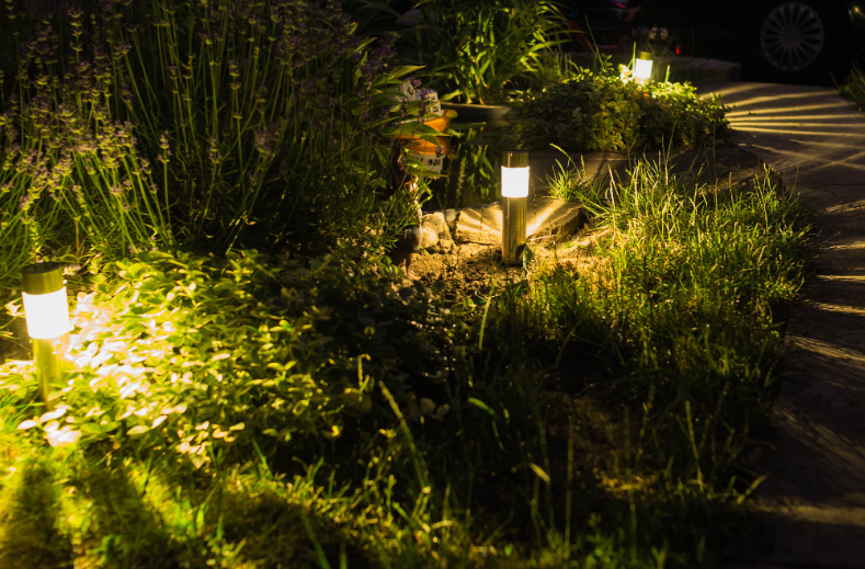 They come in many styles and sizes that blend seamlessly into your landscaping, such as ground lights, lanterns, lampposts, spheres, and faux candles.