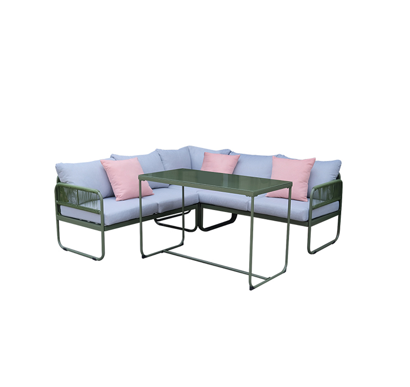 Powder-coated steel frame provides strong support and rust resistance for outdoor use. Spun poly fabric is soft yet durable, designed specifically for outdoor performance. Tempered glass tabletop is smooth, safe, and easy to wipe clean after outdoor use. Complete seating group creates a comfortable lounge zone for family and guests.