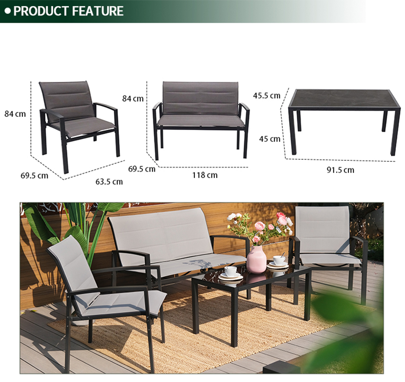 2x1 560g textilene padded back and seatPacking 1set/ctn