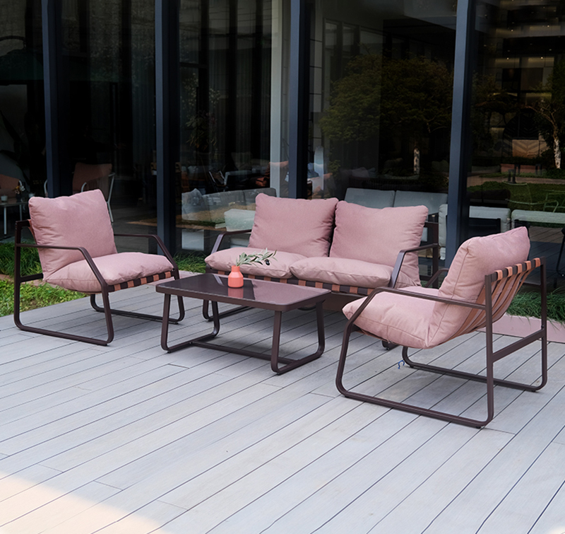 Powder-coated steel frame provides strong support and rust resistance for outdoor use. Spun poly fabric is soft yet durable, designed specifically for outdoor performance. Tempered glass tabletop is smooth, safe, and easy to wipe clean after outdoor use. Complete seating group creates a comfortable lounge zone for family and guests.