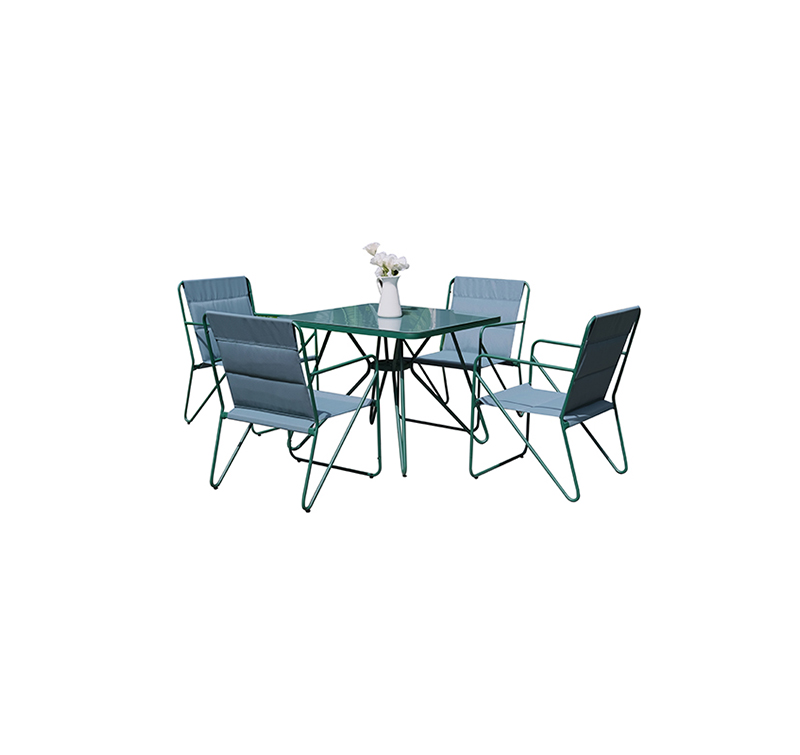5-Piece Square Tempered Glass Outdoor Dining Set SF6416 with Sturdy Steel Frame and Sling Chairs
