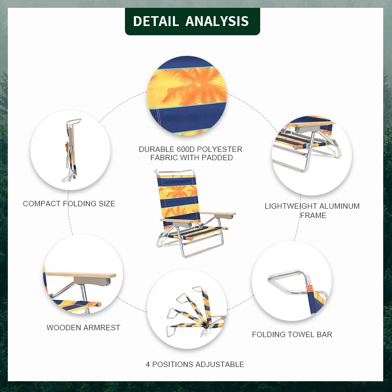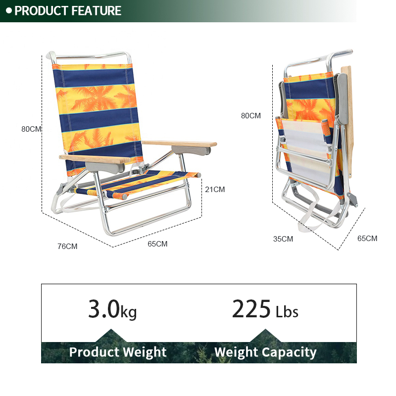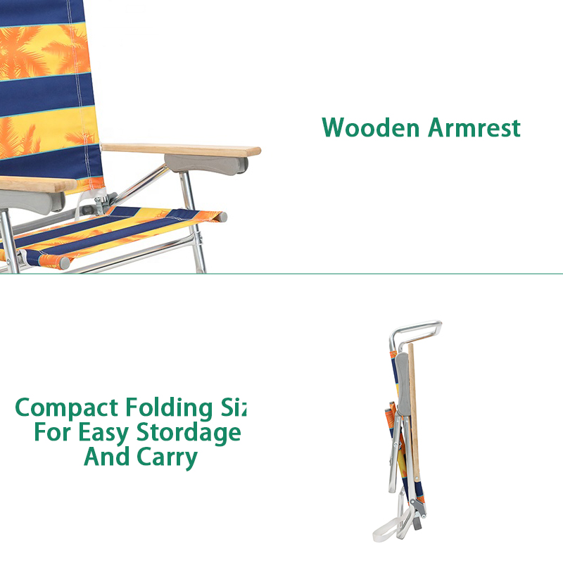 Settle in anywhere with the Adjustable Lounge Reclining Outdoor Durable Portable Wood Arm Folding Beach Chair. Lightweight aluminum frame, supports up to 300 lbs for lasting comfort. Thoughtful touches include quick-fold design and compact fold. Packs into the included carry bag for grab-and-go convenience. Net weight 3 kg. Ideal for camping, events, patios and parks.