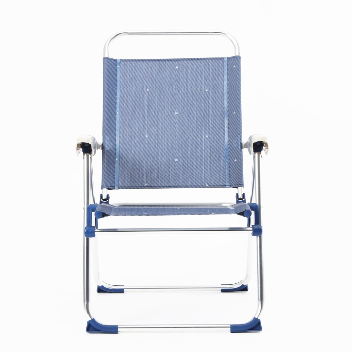 Settle in anywhere with the Alu Cham Folding Adjustable 5 Position Reclining Outdoor Mesh Sling Chair for Camping Beach Backyard and Patio. Lightweight aluminum frame, supports up to 350 lbs for lasting comfort. Thoughtful touches include adjustable armrests, quick-fold design, and compact fold. Packs into the included carry bag for grab-and-go convenience. Net weight 11.4 kg. Ideal for camping, events, patios and parks.