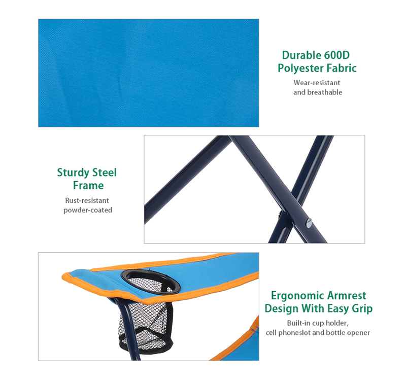 The safety lock & click-to-lock design help you to set it up effortlessly and safely. The lightweight folding camping chair is easy-carrying and can be stored almost anywhere. Comfortable chairs made of rugged 600 denier polyester with powder-coated steel frames. No assembly needed, easy to open and fold. It can be folded in a very compact size for easy transportation and storage. The small camping chair with side table, feel free to rest your snacks&drinks.