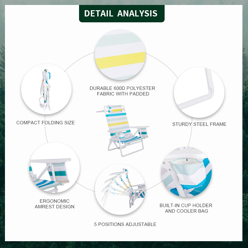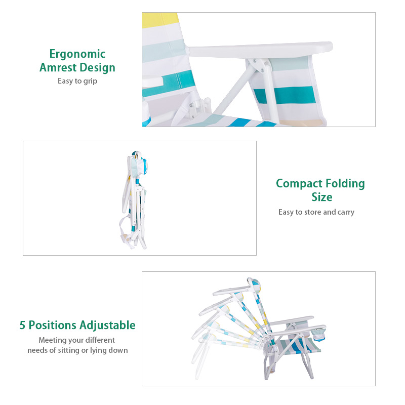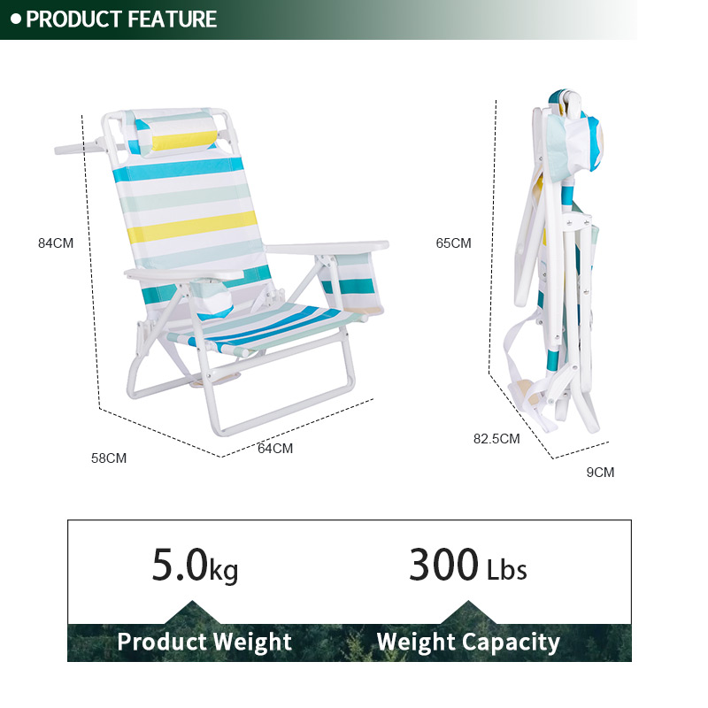 Custom Portable Backpack Outdoor Aluminum Folding Collapsible Adjustable Reclining Beach Chair