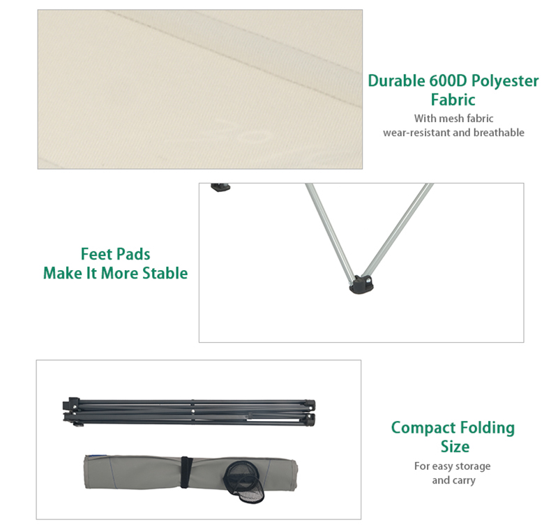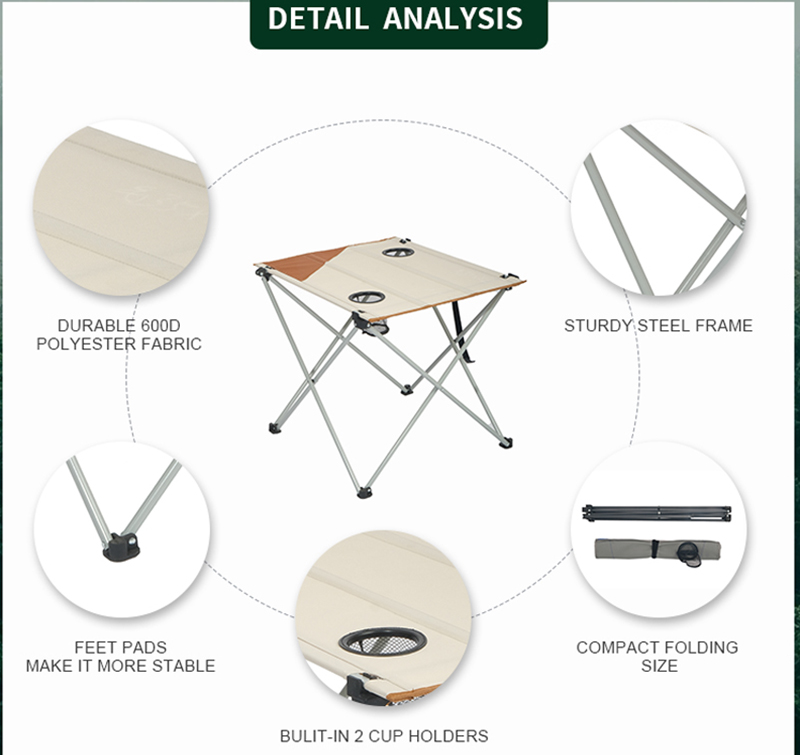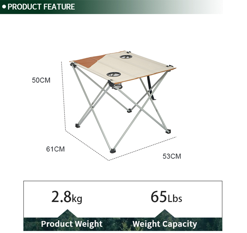 Different from the other folding table, this table has a novel design. Made of Powder coating steel frame and high quality 600D Polyester fabric with 2 cupholders. Can hold up to 66LBS, the table is made to withstand a lifetime of enjoyment. No assembly needed, easy to open and fold. It can be folded in a very compact size for easy transportation and storage.