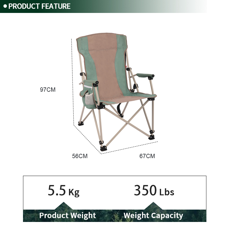 Green Portable Folding Camp Chair with Carry Strap and Cup Holder