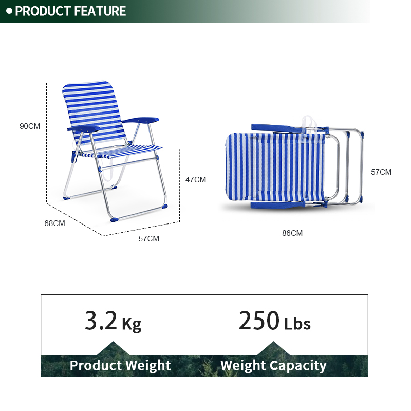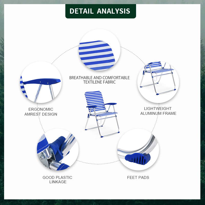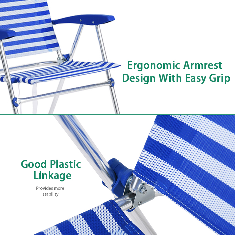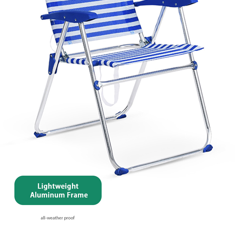 Settle in anywhere with the High Quality Custom Adjustable Foldable Camping Picnic Hiking Beach Chair. Lightweight aluminum frame, powder-coated steel frame, supports up to 300 lbs for lasting comfort. Thoughtful touches include quick-fold design and compact fold. Packs into the included carry bag for grab-and-go convenience. Net weight 3.24 kg. Ideal for camping, events, patios and parks.