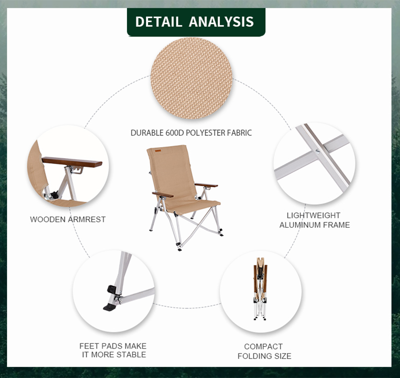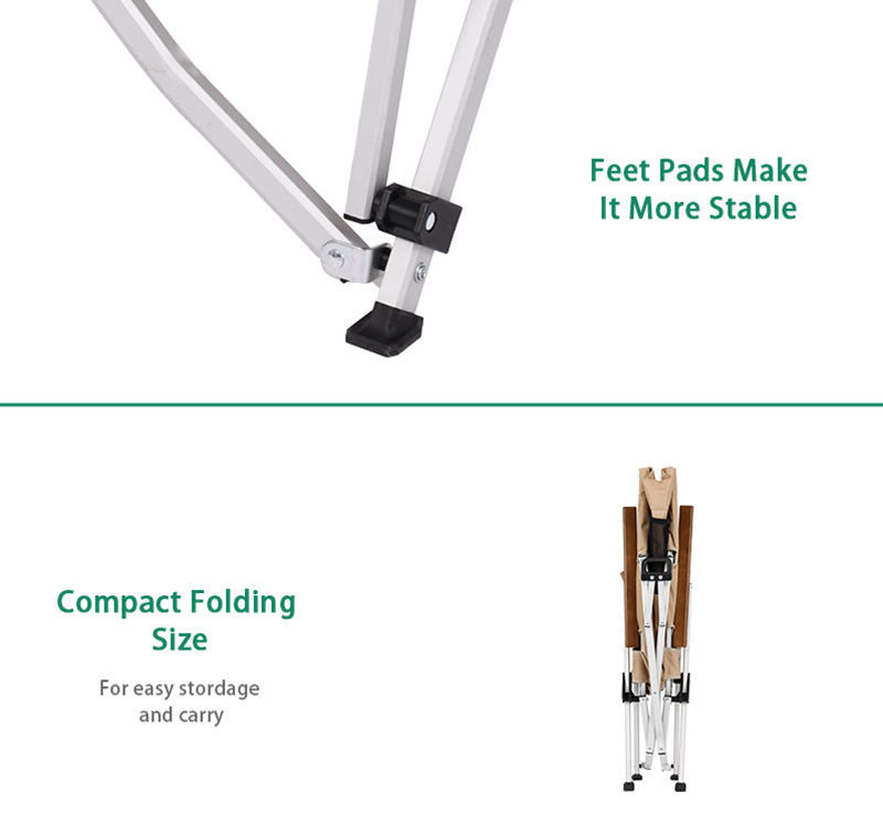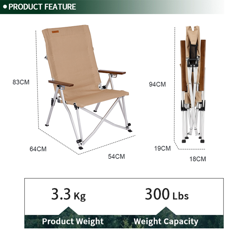 Light weight. Opens and folds in seconds. Extra wide seat surface, provide more spacious seating space. Double-layer thickened high-toughness polyester.