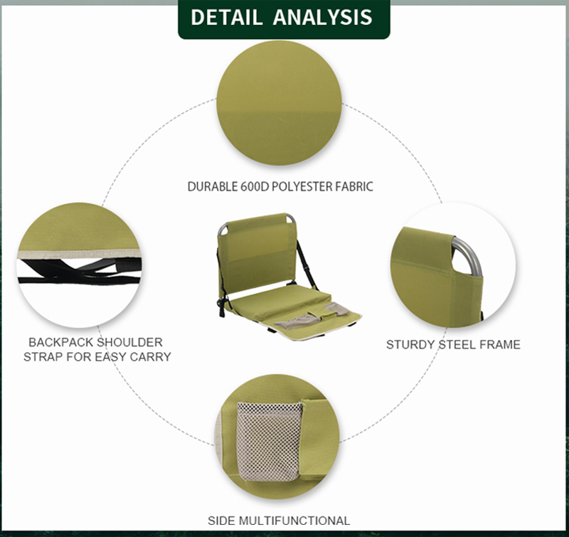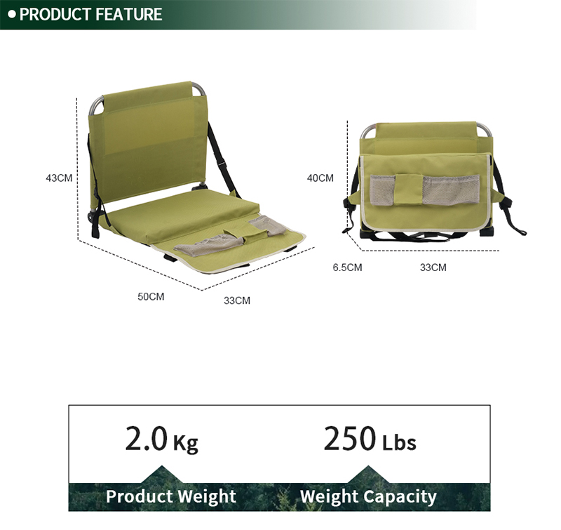 The Folding Stadium Seat with power coating Sturdy metal frame and 600D OXFORD Fabric will guarantee long working time. Webbing straps with quick release buckles allows adjustment to your favorite sitting position. . . Aside from its portable and foldable design, our stadium seats were designed to bring convenience during usage. Seating Simplified - Elevate your stadium experience with a touch of sophistication in design and functionality. The cushioned seat and backrest ensure comfort on bleachers, benches, or flat ground.