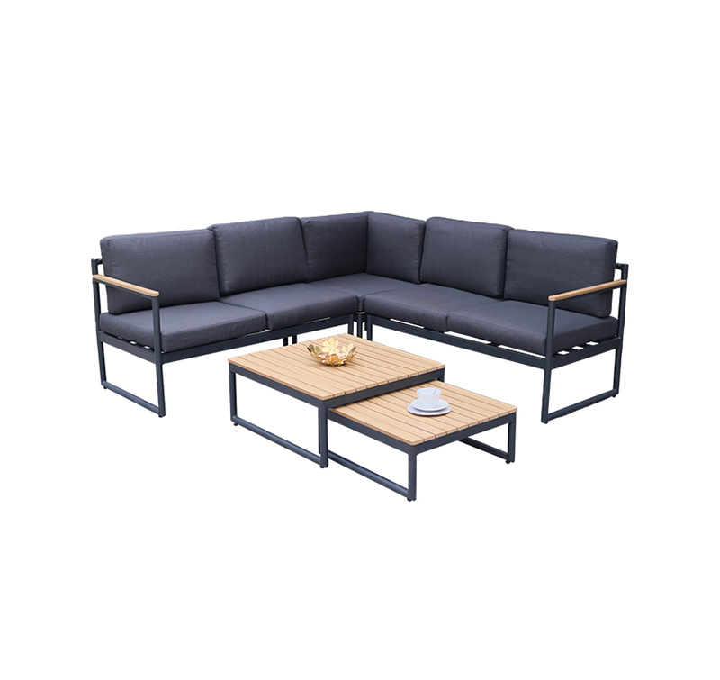Modular 5-Piece Outdoor Sectional Sofa Set with Polywood Table Top & 2 Seating Designs