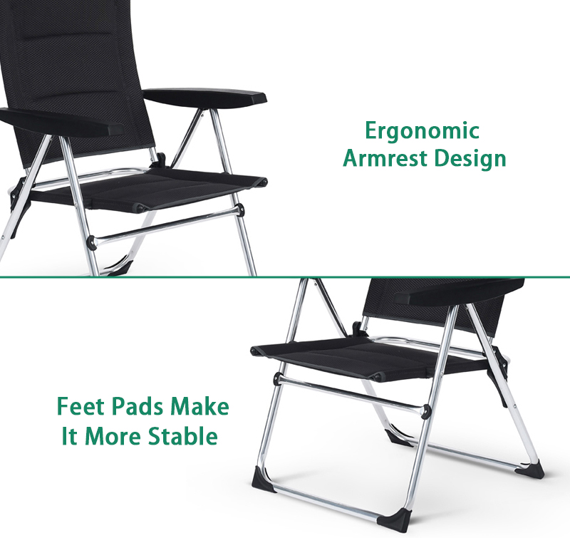 5 Position Adjustable Reclining High Back Aluminum Lightweight Outdoor Folding Camping Chair for Picnic