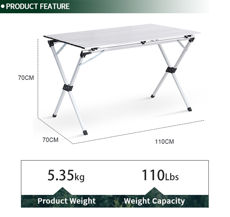 Settle in anywhere with the Outdoor Furniture Portable Aluminum Folding Camping Picnic Dining Table. Lightweight aluminum frame, supports up to 120 lbs for lasting comfort. Thoughtful touches include quick-fold design. Packs into the included carry bag for grab-and-go convenience. Net weight 4.5 kg. Ideal for camping, events, patios and parks.