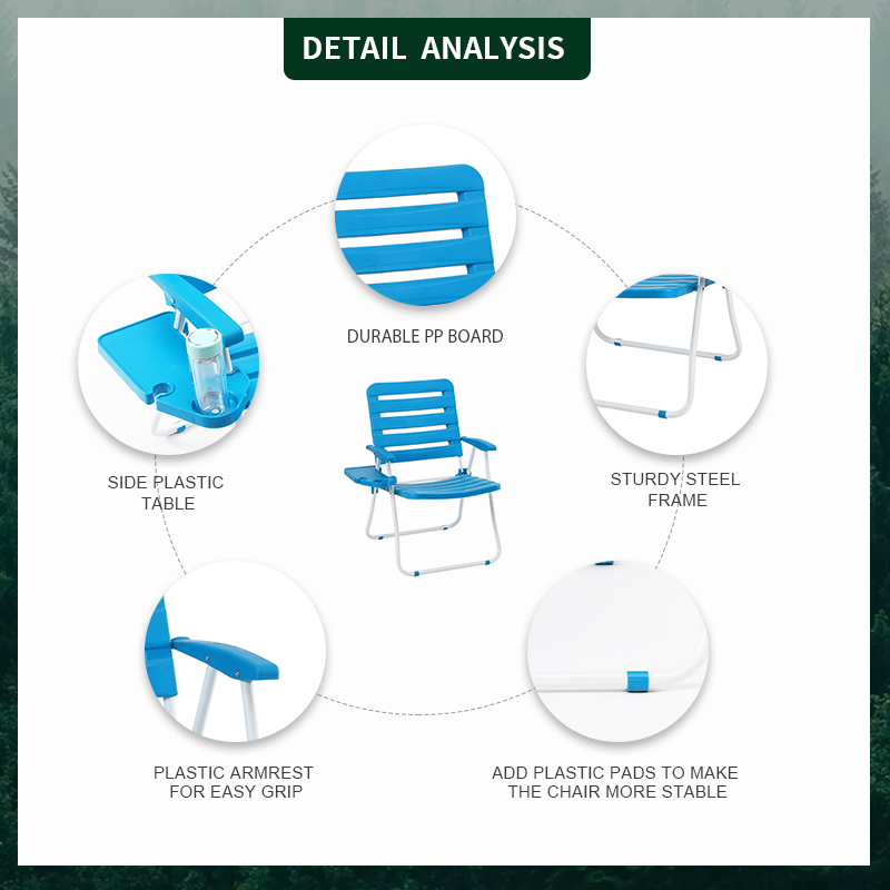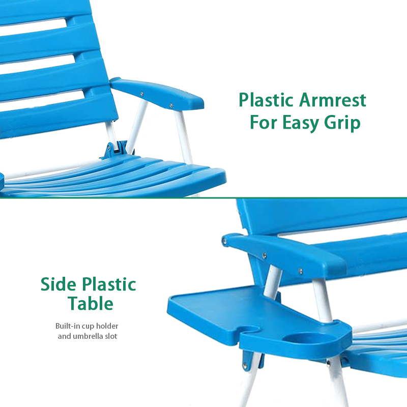 PP Board Outdoor Lightweight Plastic Folding Beach Chair with Side Table