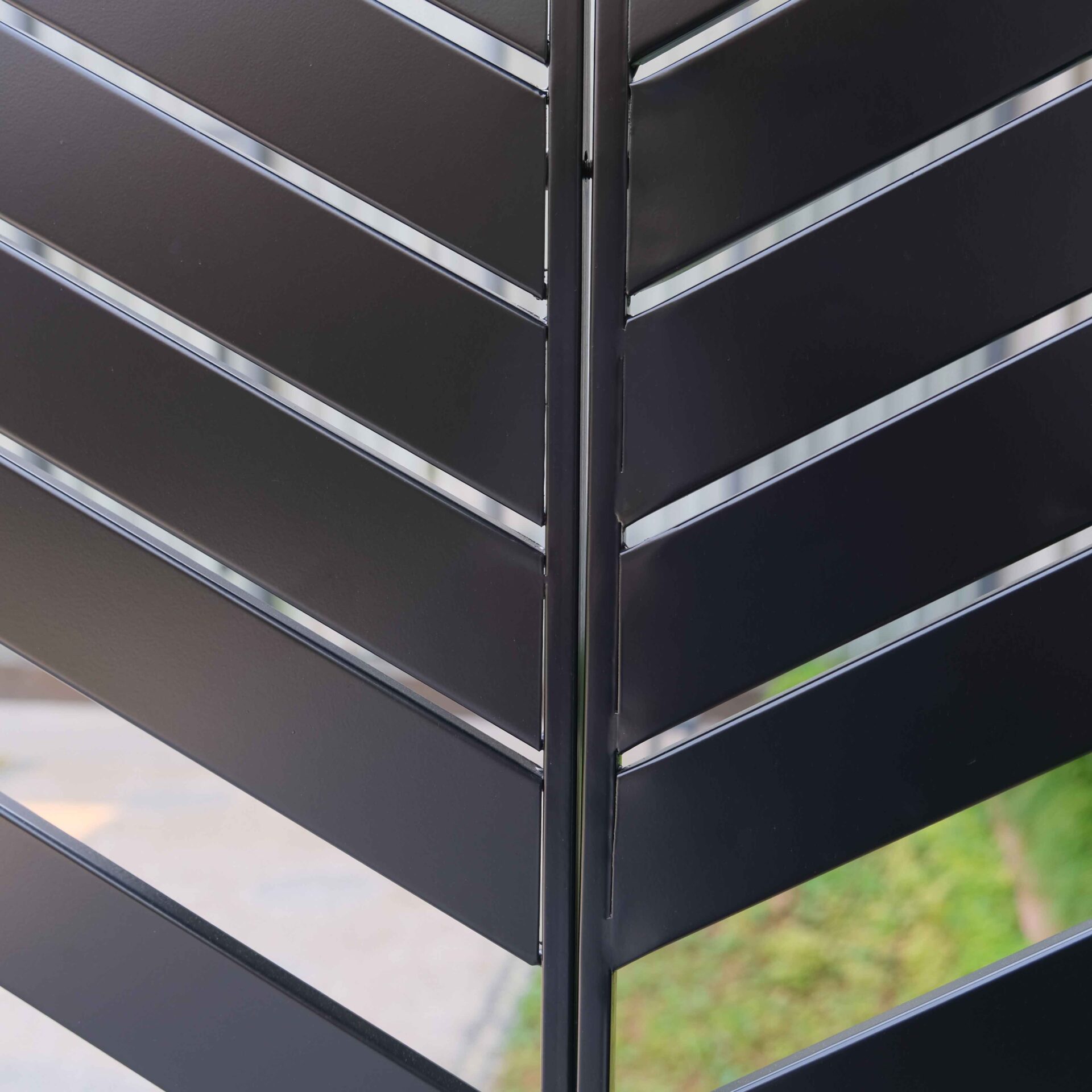 Powder-coated steel frame provides strong support and rust resistance for outdoor use. Tall screen panels define outdoor zones and add privacy without closing off light or airflow.