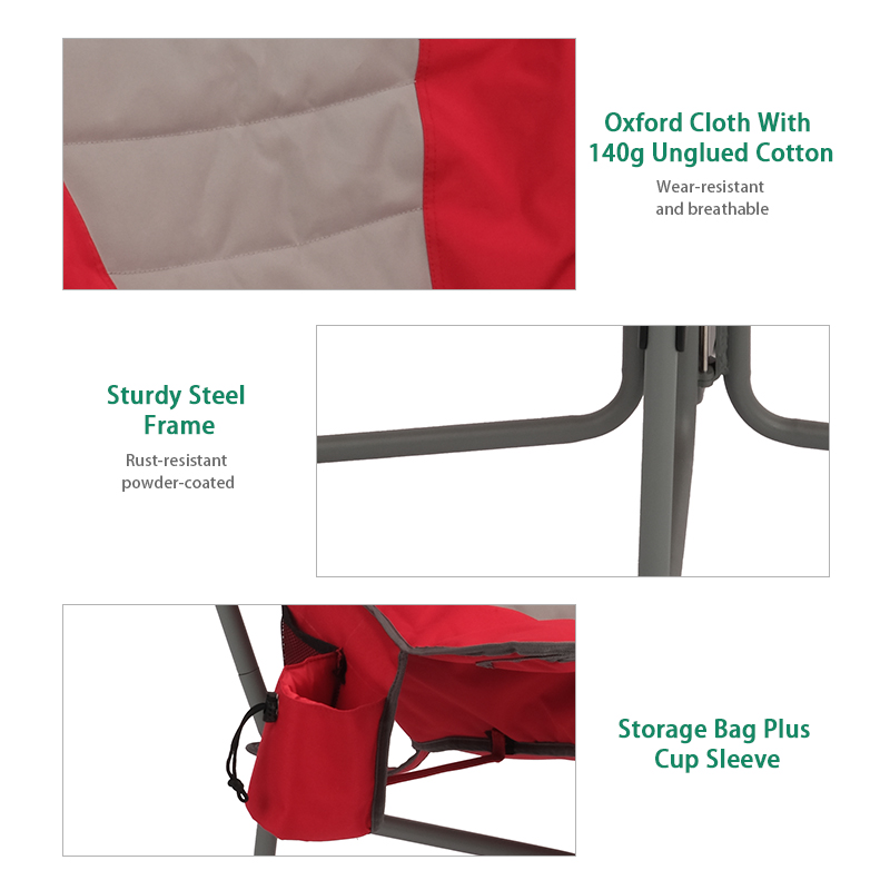 Enjoy sofa-like comfort outdoors with this red butterfly chair. Features a unique rotary shaft, removable Oxford cloth cover, 300LBS capacity, and includes a storage bag with cup holder. Durable steel frame with skid-resistant feet.