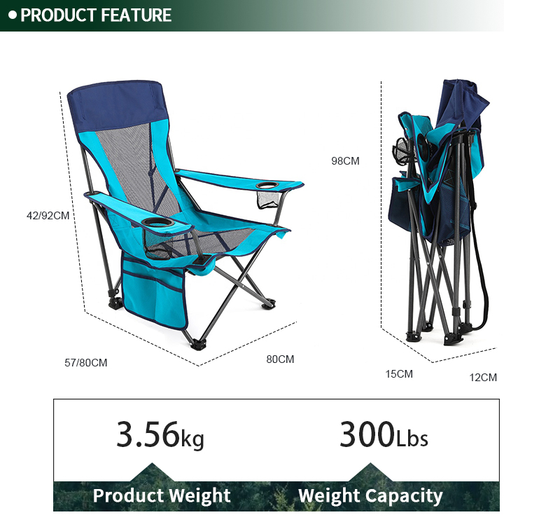 Settle in anywhere with the Ultralight Outdoor Beach Portable Camping Metal Chair For Fishing With Cup Holder. Powder-coated steel frame, breathable mesh panels, supports up to 300 lbs for lasting comfort. Thoughtful touches include quick-fold design and compact fold. Packs into the included carry bag for grab-and-go convenience. Net weight 3.56 kg. Ideal for camping, events, patios and parks.