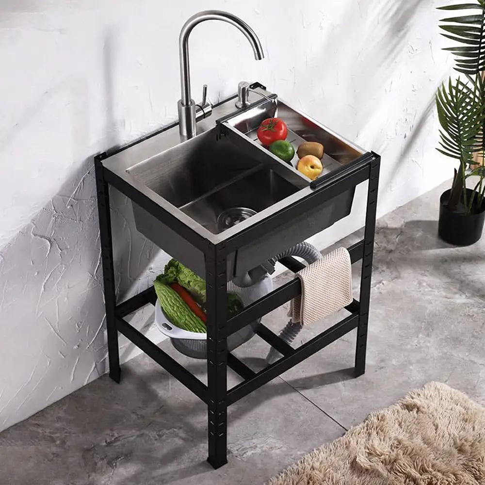Speaking of entertaining, a double-basin outdoor sink is ideal for iced beverages on one side while you prepare meat and vegetables for the grill on the other. These divided sinks are also ideal for hand-washing dishes.