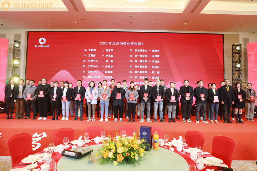 On January 6, Zhejiang Sunshine Leisure Products Co., Ltd. held the company’s 2023 annual commendation award ceremony and 2024 New Year’s dinner in Wuyi Huatian Meidi Manor Hotel. On the same day, the company’s core management team, sales, R & D, production, functional systems, subsidiaries, the main department heads, as well as the 2023 annual award-winning advanced employees to attend this meeting, we review the past year, the saint snow people write a wonderful, looking forward to the full of opportunities in the 2024. a tree, a hundred gained the old year, the five grains of the harvest to welcome the spring.